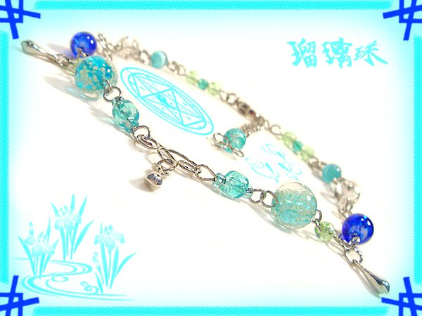 ◎蒼い月明かりのアンクレット水色と白の斑点の瑠璃珠&ブルーのひびガラスビーズ(クラック硝子ビーズ)ハンドメイド手作りワイヤーワーク針金細工ワイヤーアート瑠璃玉 http://j.mp/2zukCd3 https://pic.twitter.com/aF4RSJhEH0