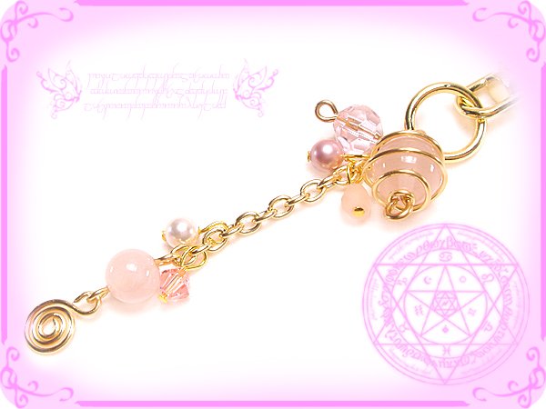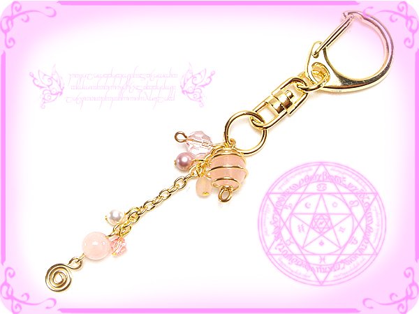 天然石ローズクォーツにゴールドのワイヤーを螺旋状に三次元巻き巻きしたワイヤーワーク/ワイヤーアートのくるくるくるりんお花の精霊のキーホルダー手作りハンドメイド http://j.mp/2VndSWn https://pic.twitter.com/BHWFnCH5ql