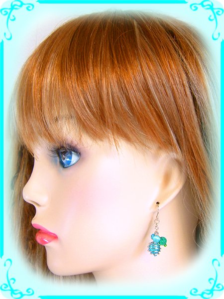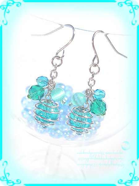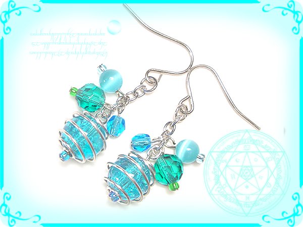 東方の空の神様、空神帝様が世を忍ぶ仮の人間の姿で現れる時にさりげなく耳元にぶら下げていた耳飾り◎くるりん清涼空水華のイヤリング透明水色トンボ玉&クラックガラスビーズひびガラスビーズ ハンドメイド手作りワイヤーワーク/ワイヤーアート http://j.mp/aF0qmn