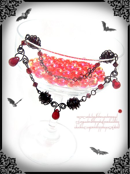 くるくるヴァンパイアプリンセスのブレスレットBW深紅ワイヤーワーク天然石ガーネット&雫ガラスビーズ真紅ハンドメイド手作りワイヤーアート吸血ぐるぐる渦巻き腕輪 http://j.mp/2hzVN5m https://pic.twitter.com/eus3dYeTNz