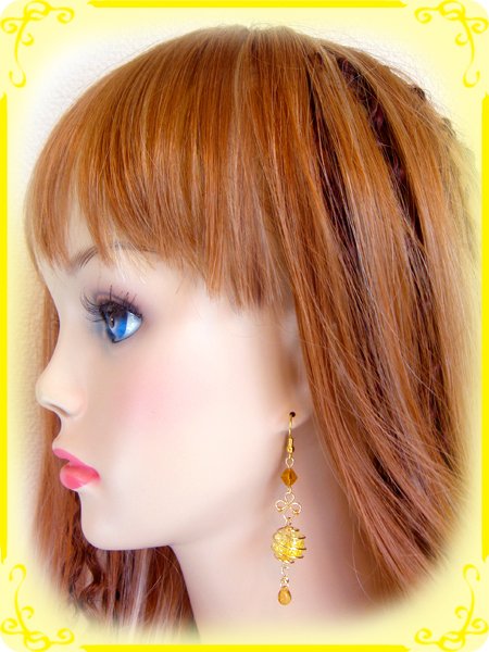 レモンイエローのクラックアクリルビーズ&しずくビーズ大粒とワイヤーワーク/ワイヤーアートのくるくるクラッシュオーブの雫ピアス レモンパイン手作ハンドメイド http://j.mp/2BlL3ii https://pic.twitter.com/DB1YZXWhaI
