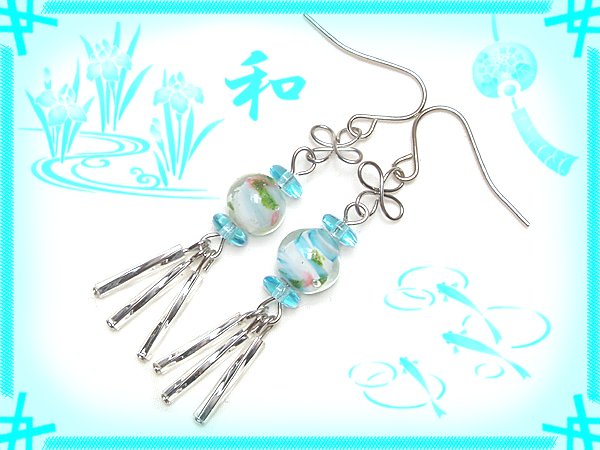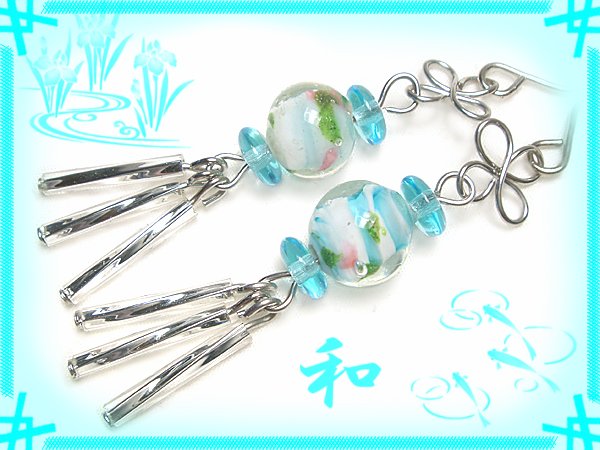 和風キラキラ風鈴ピアス 瑠璃珠 丸 水色&キラリンツイストビーズ手作りハンドメイド花びらモチーフのワイヤーワーク瑠璃玉キラキラフリンジ和様耳飾りワイヤーアート http://j.mp/2uZVVRj https://pic.twitter.com/T6EWtUoYXh