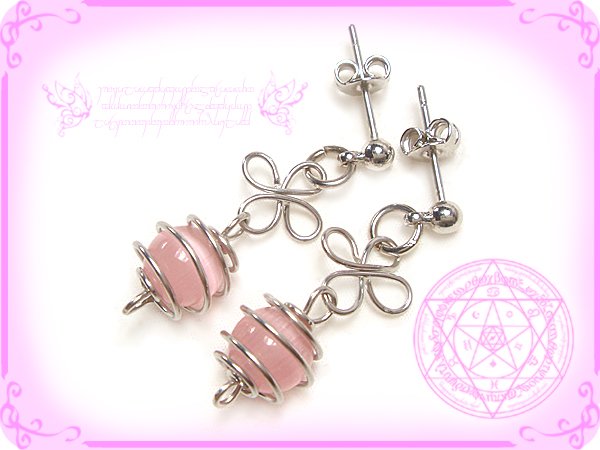 淡いクリーミーなピンクのキャッツアイビーズとワイヤーワイヤーワーク(ワイヤーアート)のくるくるクリームベリーのピアス手作りハンドメイドぐるぐる渦巻き耳飾り http://j.mp/2IvQ68q https://pic.twitter.com/Mix7bKQ6SV